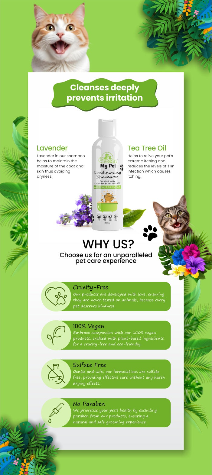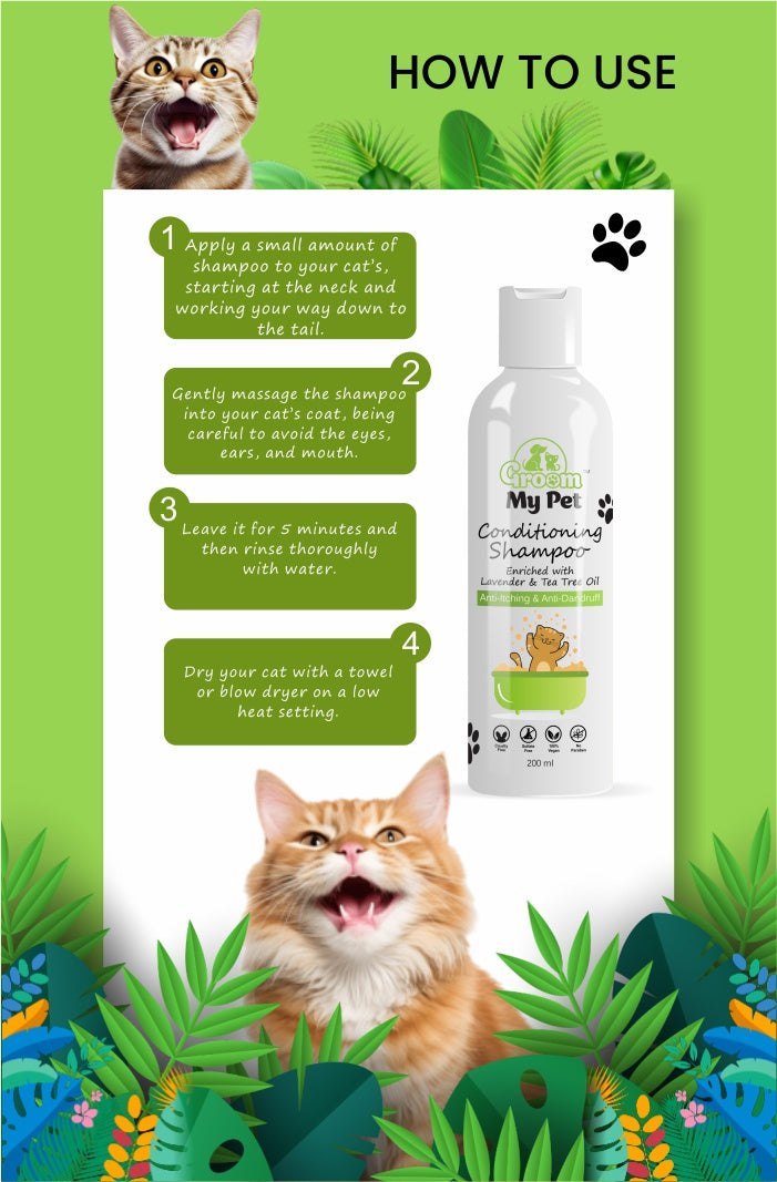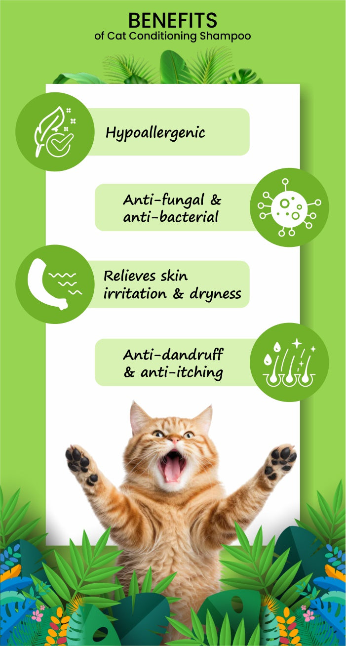 Arvinder This conditioning shampoo delivers a gentle, effective cleanse while conditioning your cat’s fur, resulting in a soft, shiny coat that’s easy to maintain.