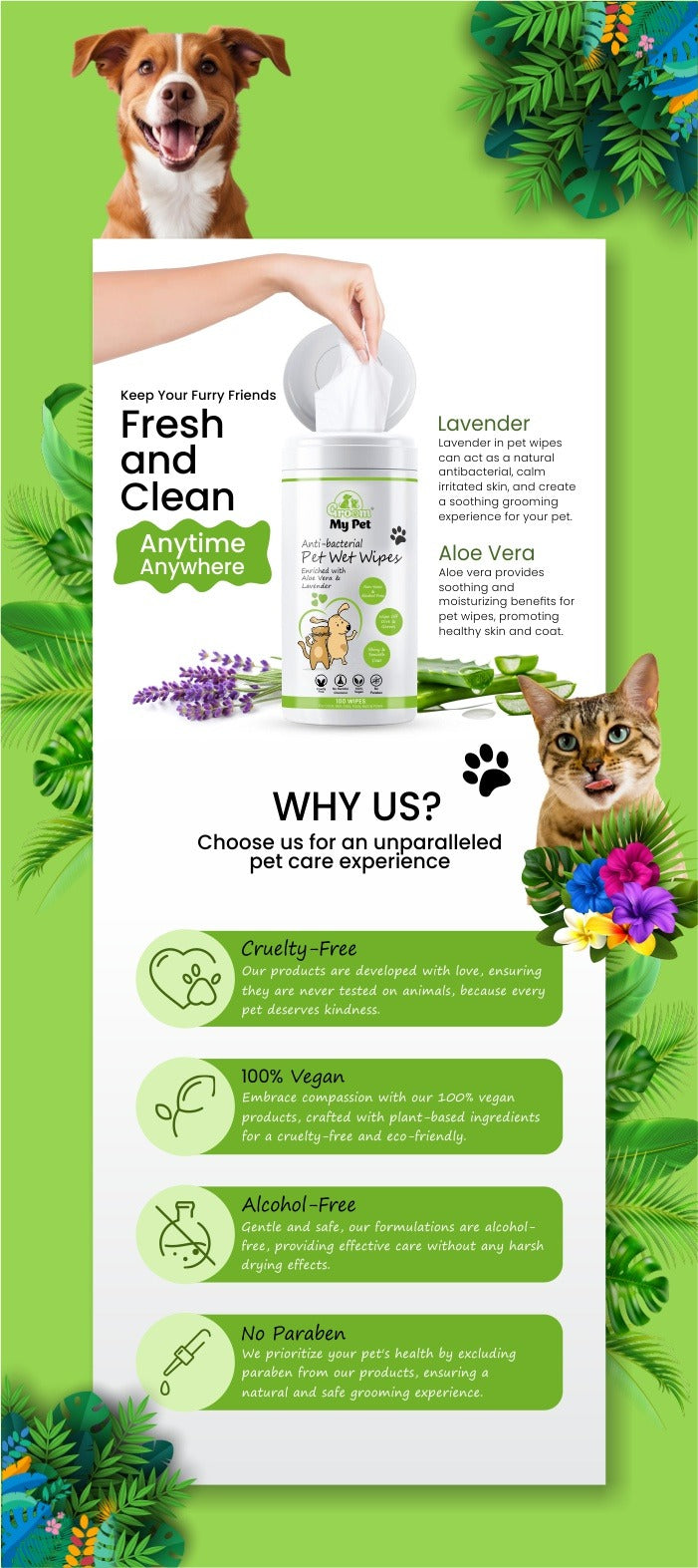 I recently found the perfect wet wipes for pet grooming, and I got them from here. They are non-toxic and alcohol-free, effectively wiping away germs and dirt in no time. I absolutely love this product! I recommend it to all pet parents who are looking for high quality at an affordable price—definitely give it a try!